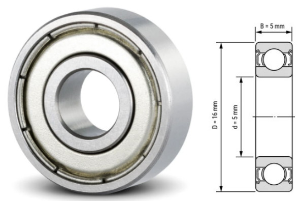 Complete 625 series deep groove ball bearings in standard size 5mm (ID) × 16mm (OD) × 5mm (W), available in multiple configurations for reliable performance in industrial, automotive, and mechanical applications: